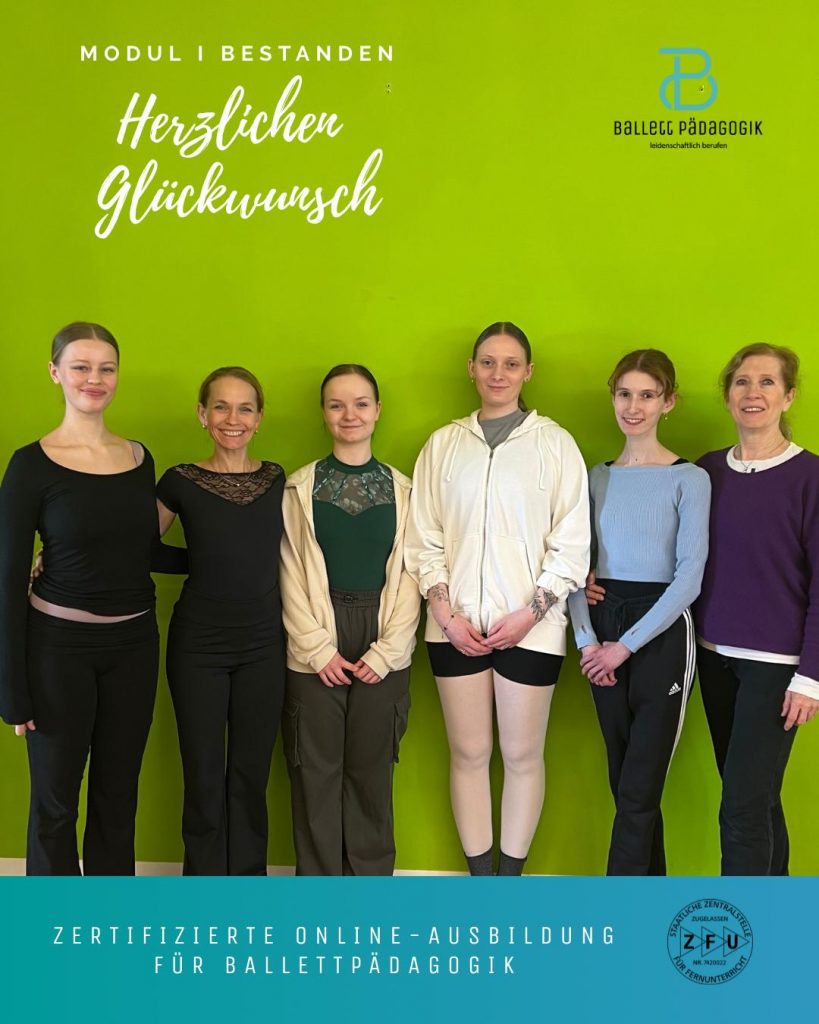 Die intensive Arbeit und das Üben im Anleiten von kindgerechten Bewegungskombinationen hat allen ein starkes Selbstbewusstsein und eine klare Körpersprache für den Ballettunterricht mit Kindern abverlangt.